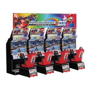 Linkable up to four cabinets, the game has three game modes: Grand Prix, Versus, and Co-Op. In Grand Prix mode, players can compete through 40 rounds over five selectable cups. Versus mode offers competitive racing excitement for all players. The new 2-Person Co-Op mode features “Fusion Karts.” One person drives while the other “shoots” other competitors.